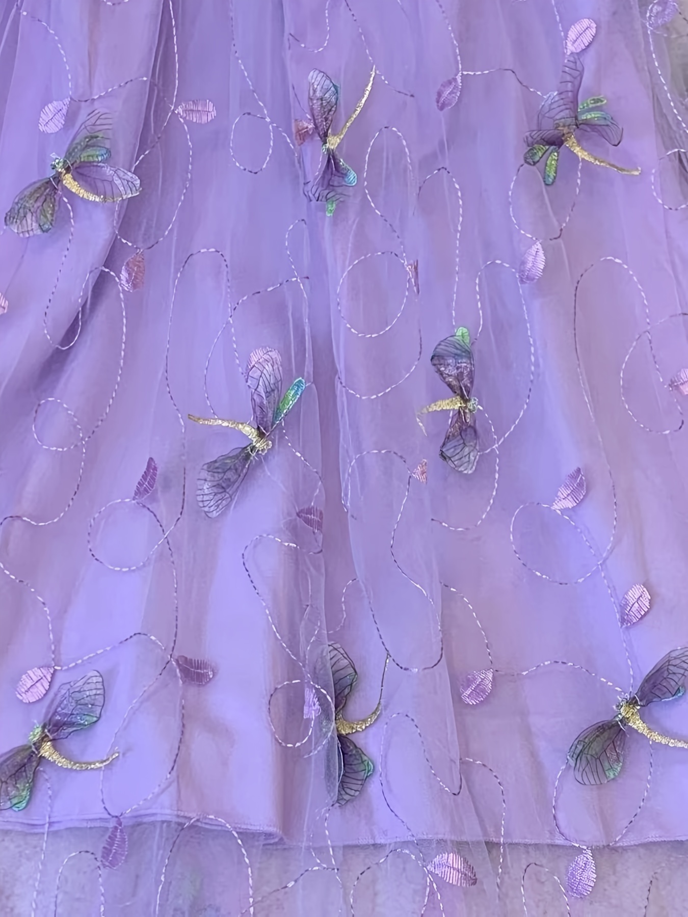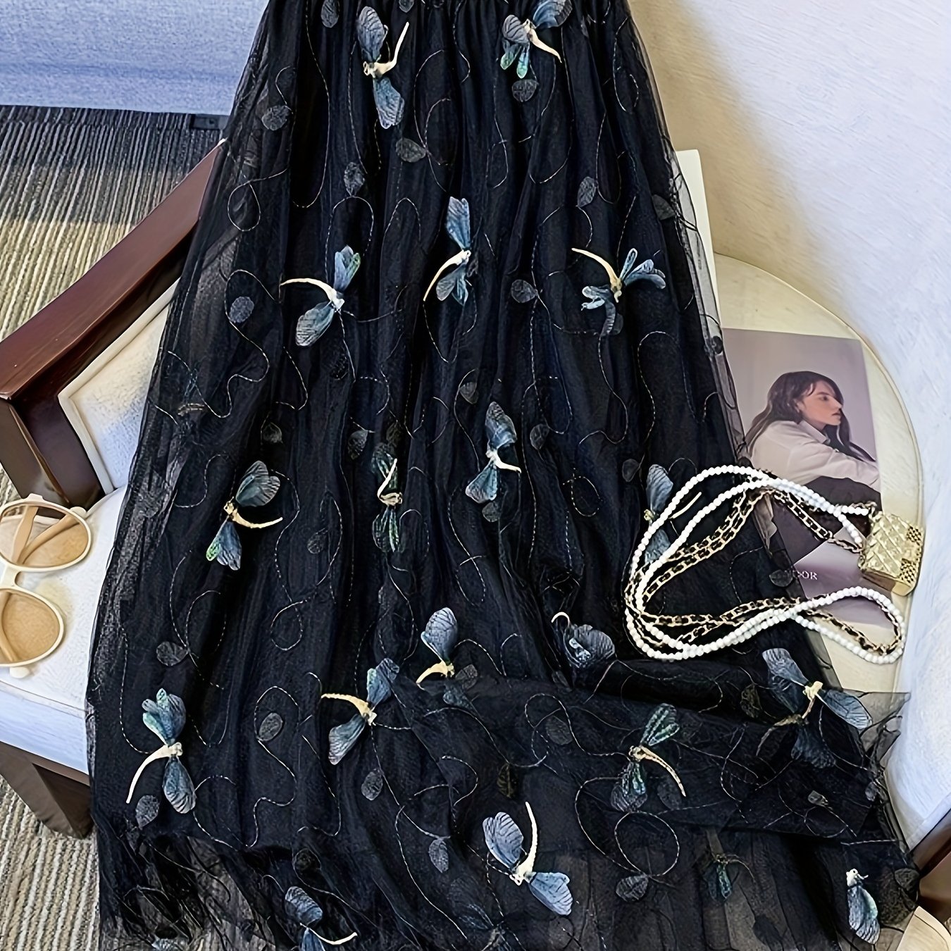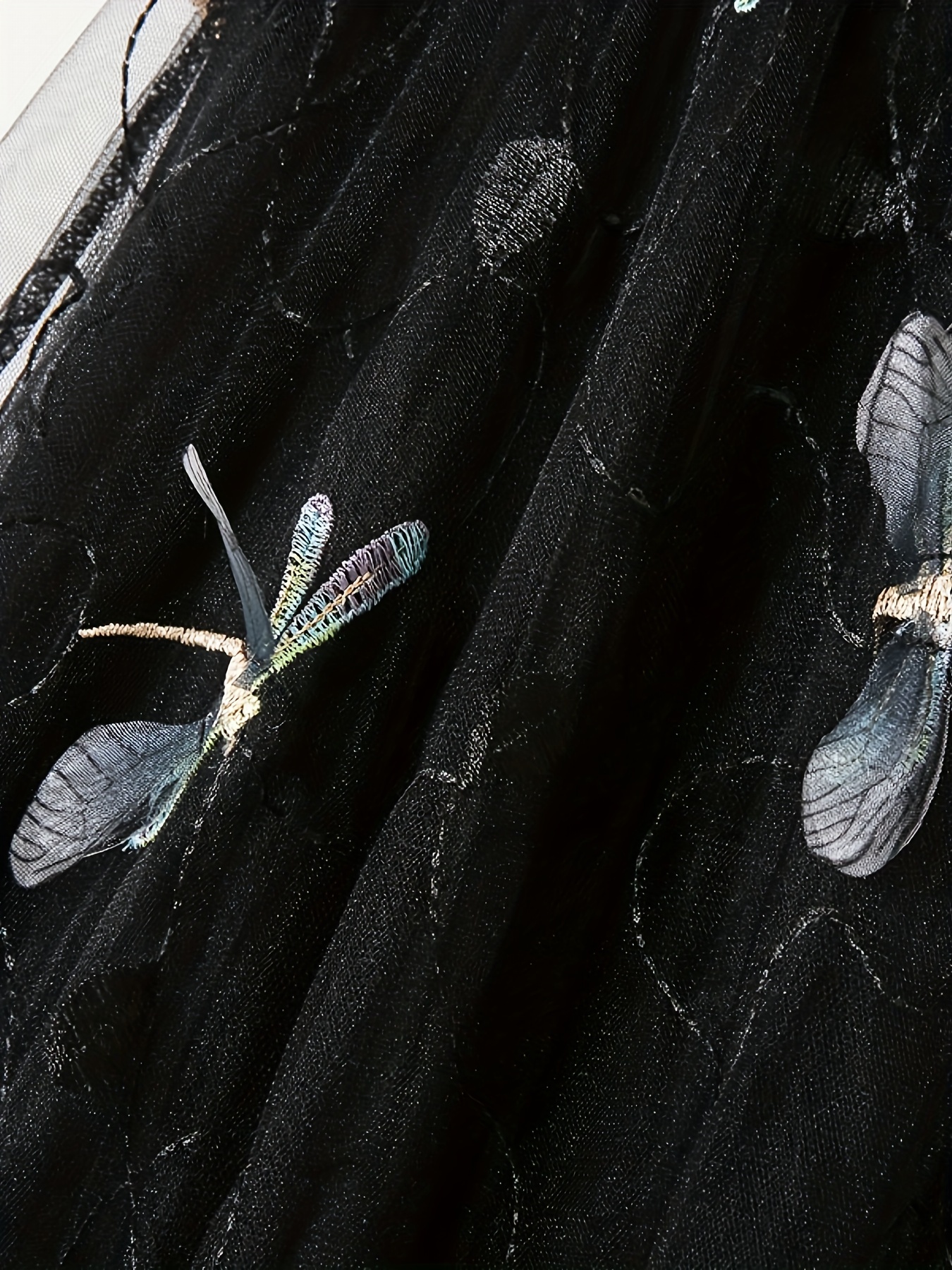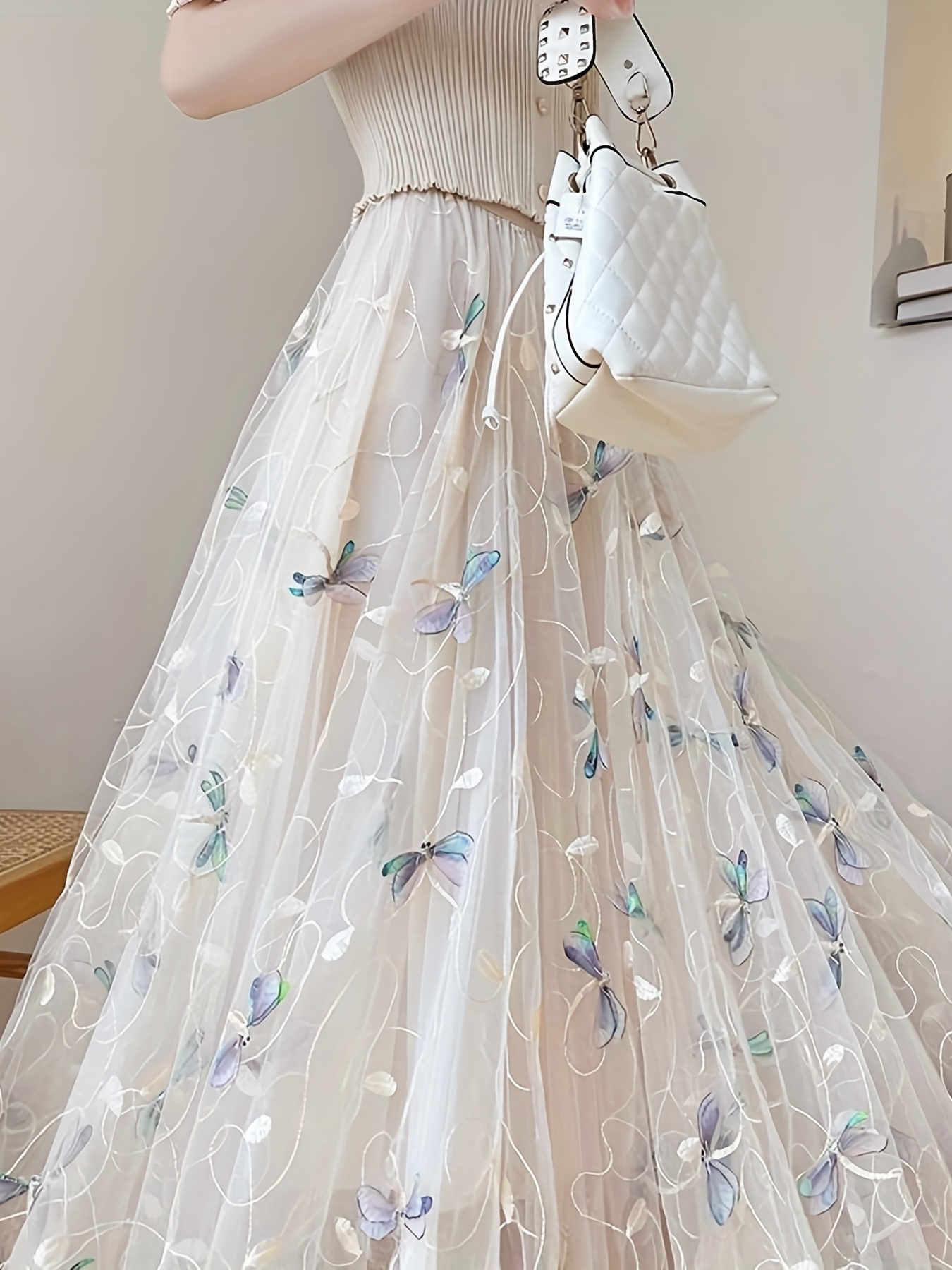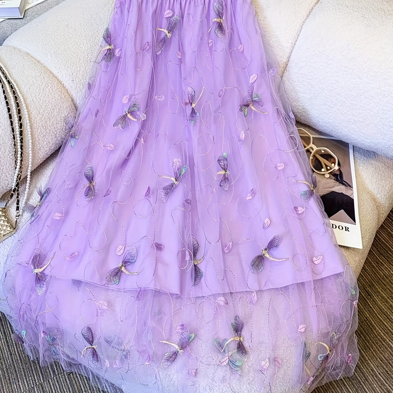 • Dragonfly Applique Tulle Skirt, Casual Elastic Waist Skirt, Women's Clothing